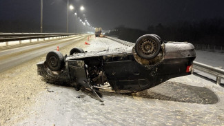 Водитель легковушки не справился с управлением из-за снегопада.