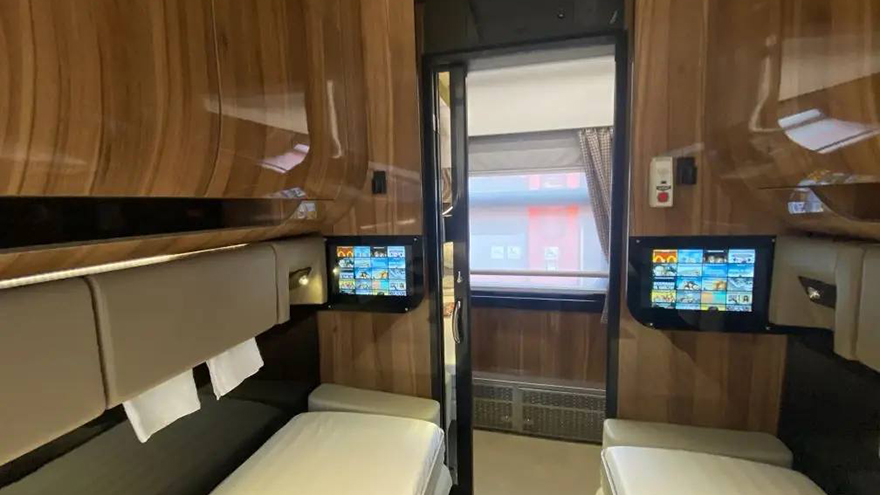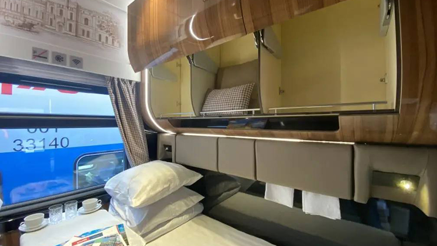 В модернизированных вагонах горизонтальное расположение мест – в ближайшее время такие появятся уже во всех составах этих поездов. В каждом вагоне по восемь купе, и там есть возможность настройки освещения, вместительные закрытые полки для ручной клади, специальные места для верхней одежды, мультимедийные экраны с опцией выбора контента, индивидуальные светильники, розетки и USB-разъёмы, кнопка вызова проводника, а также другие удобства.